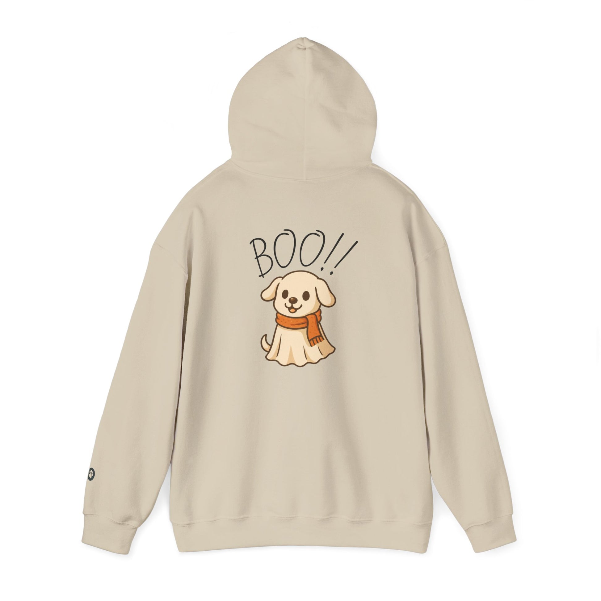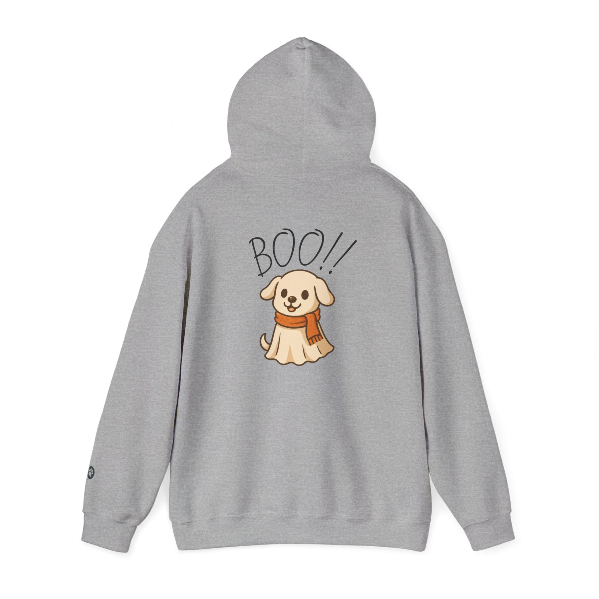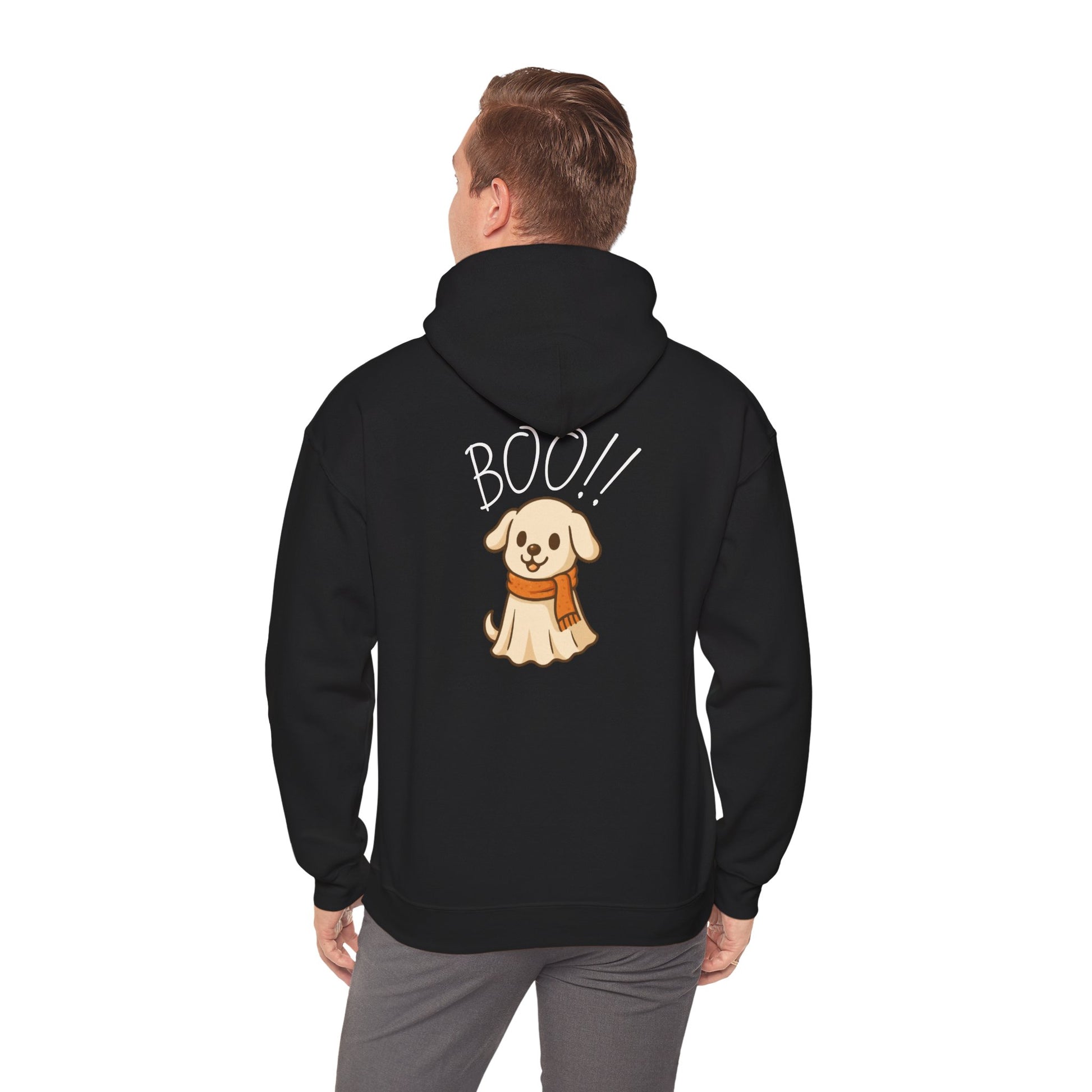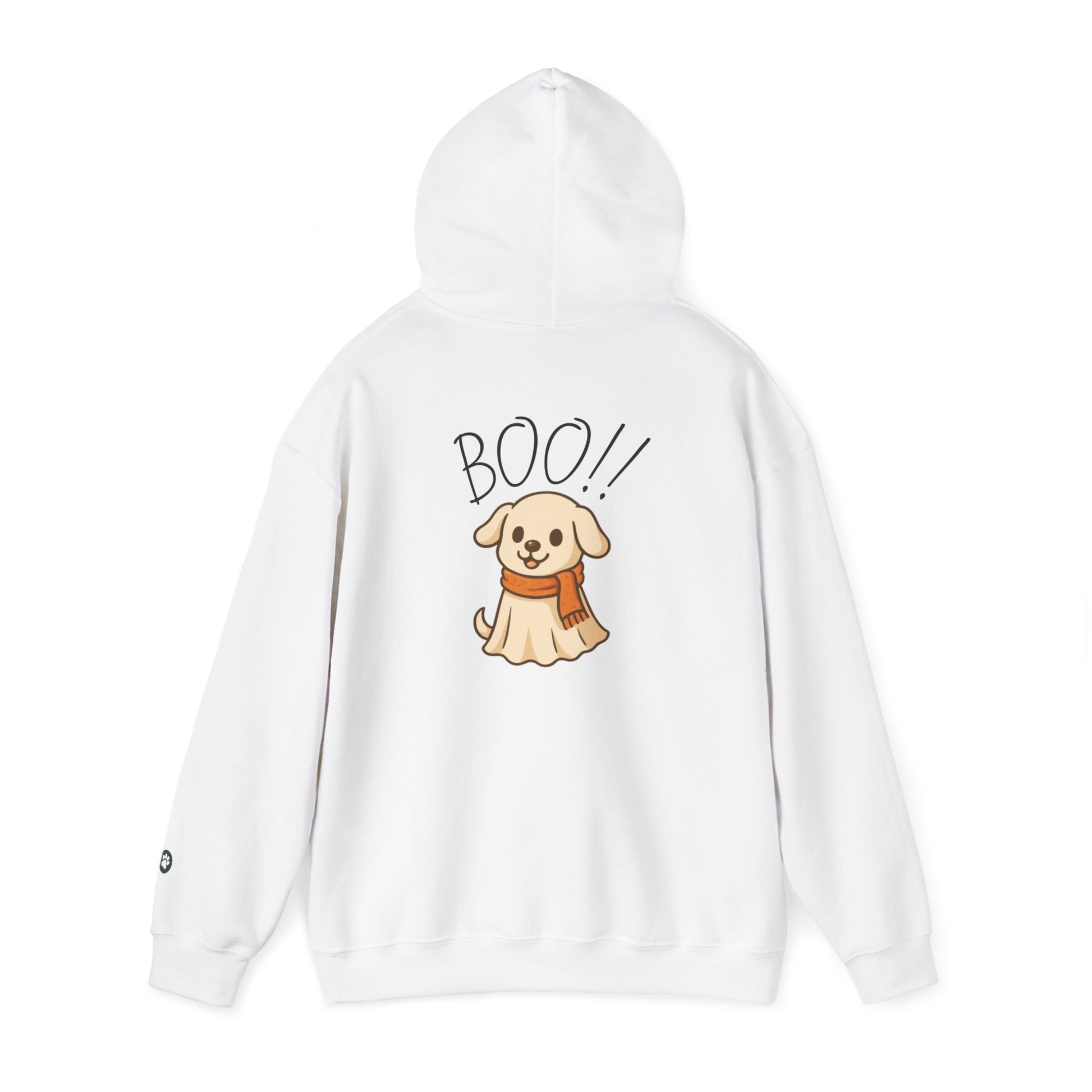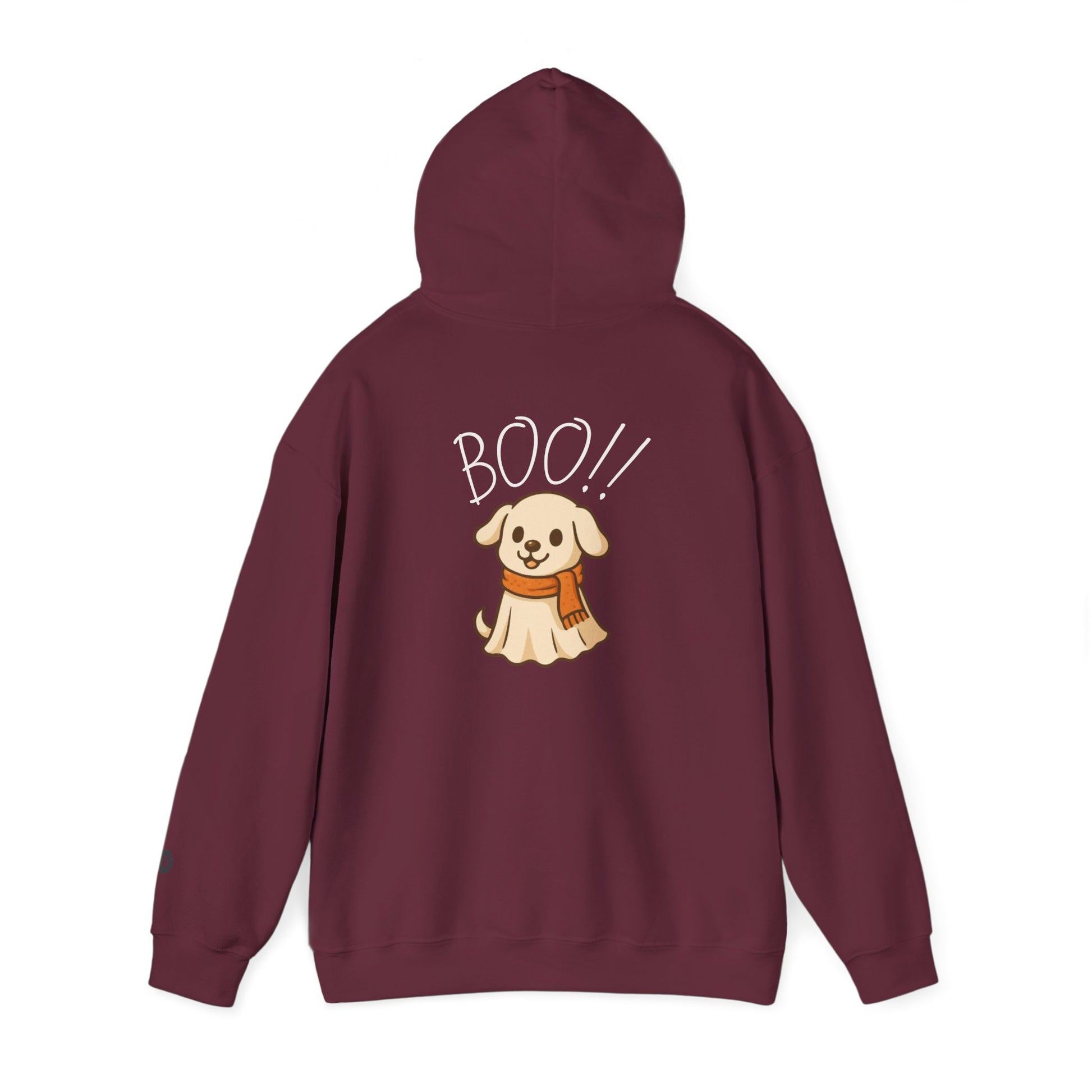 Snuggle up with our "BOO!!!" Puppy Dog Hoodie. This comfortable pullover hoodie features a high-quality print of a playful ghost puppy wearing a scarf and the bold text "BOO!!". The loose fit and soft material make it a go-to choice for casual wear. Perfect for walking the dog, grabbing coffee, or relaxing on the couch.