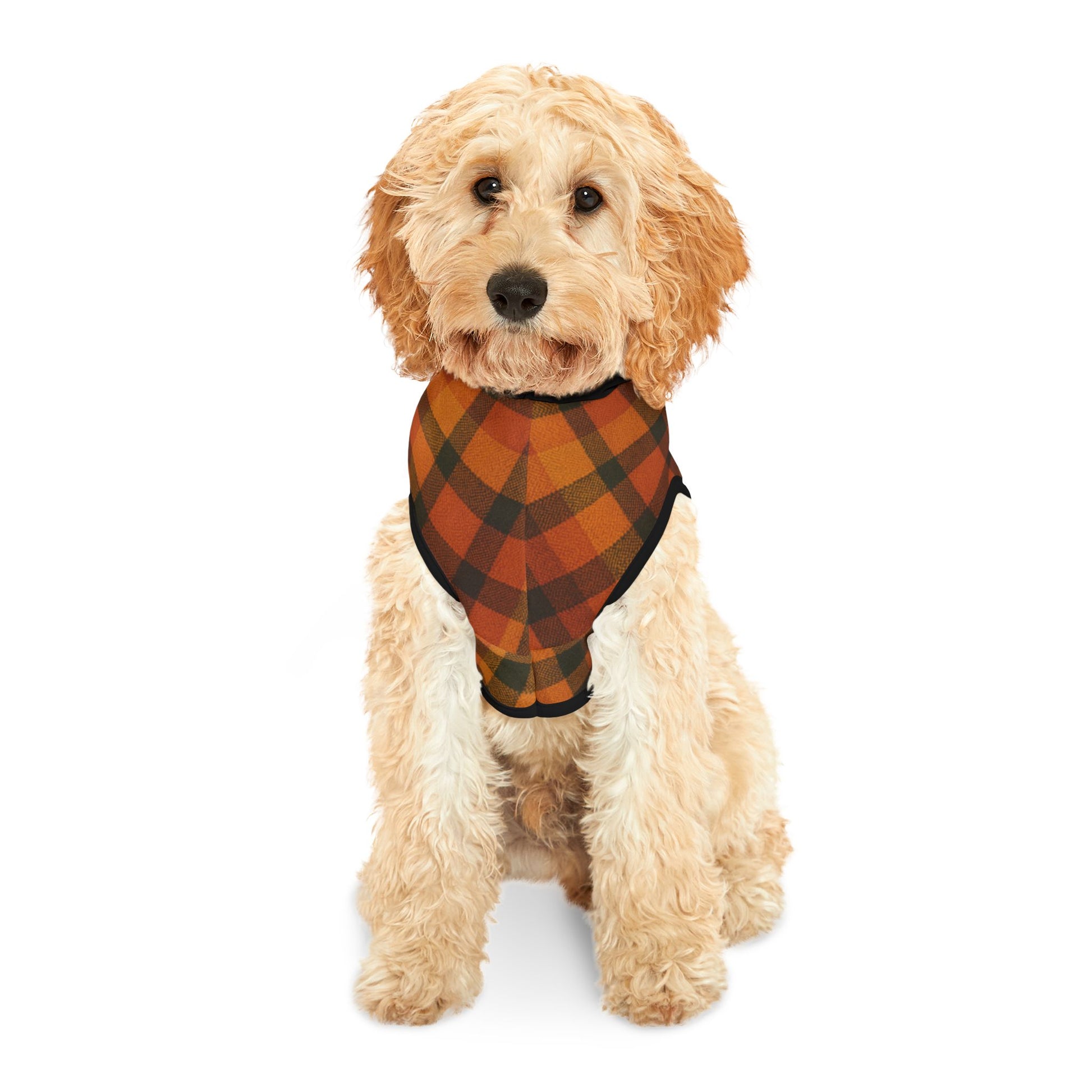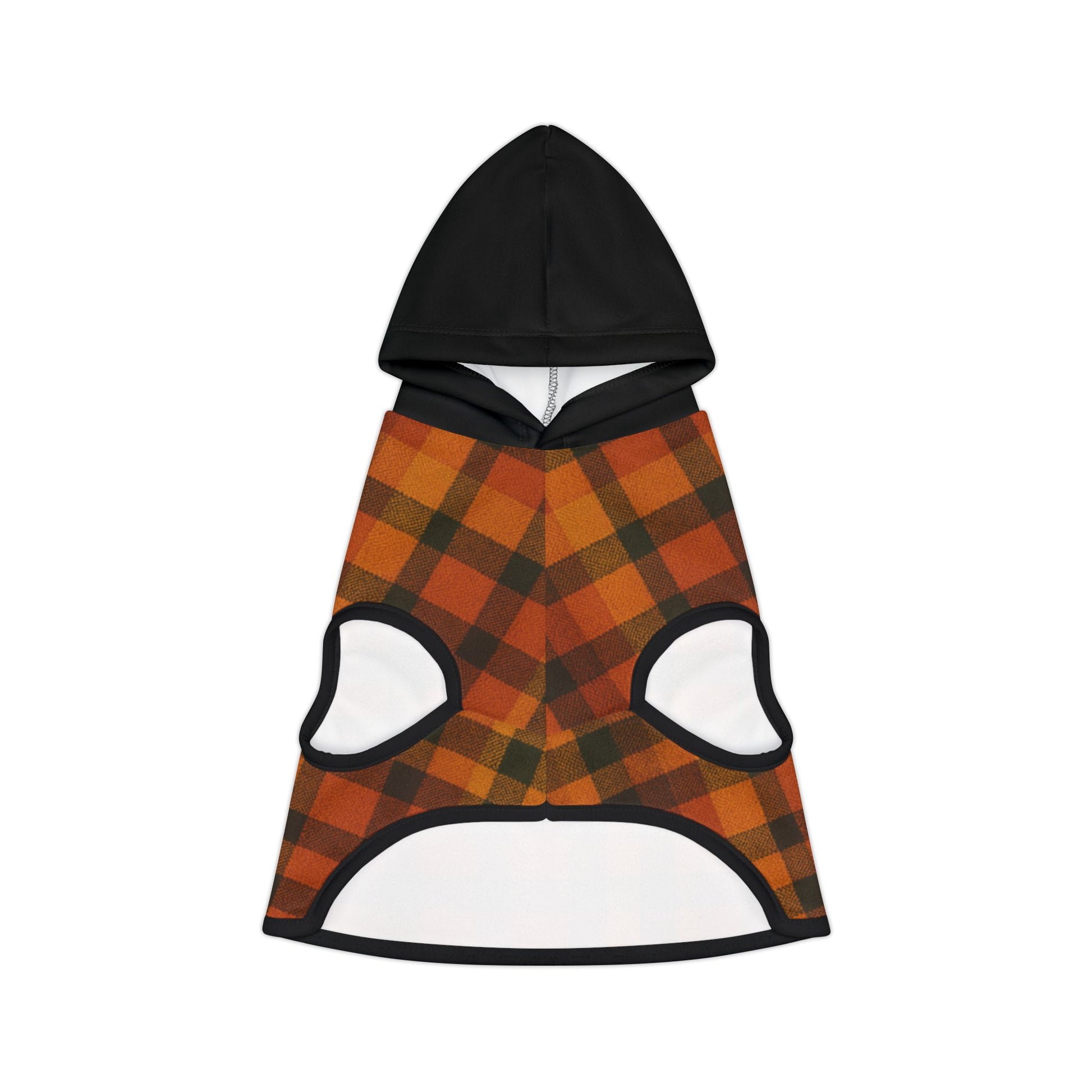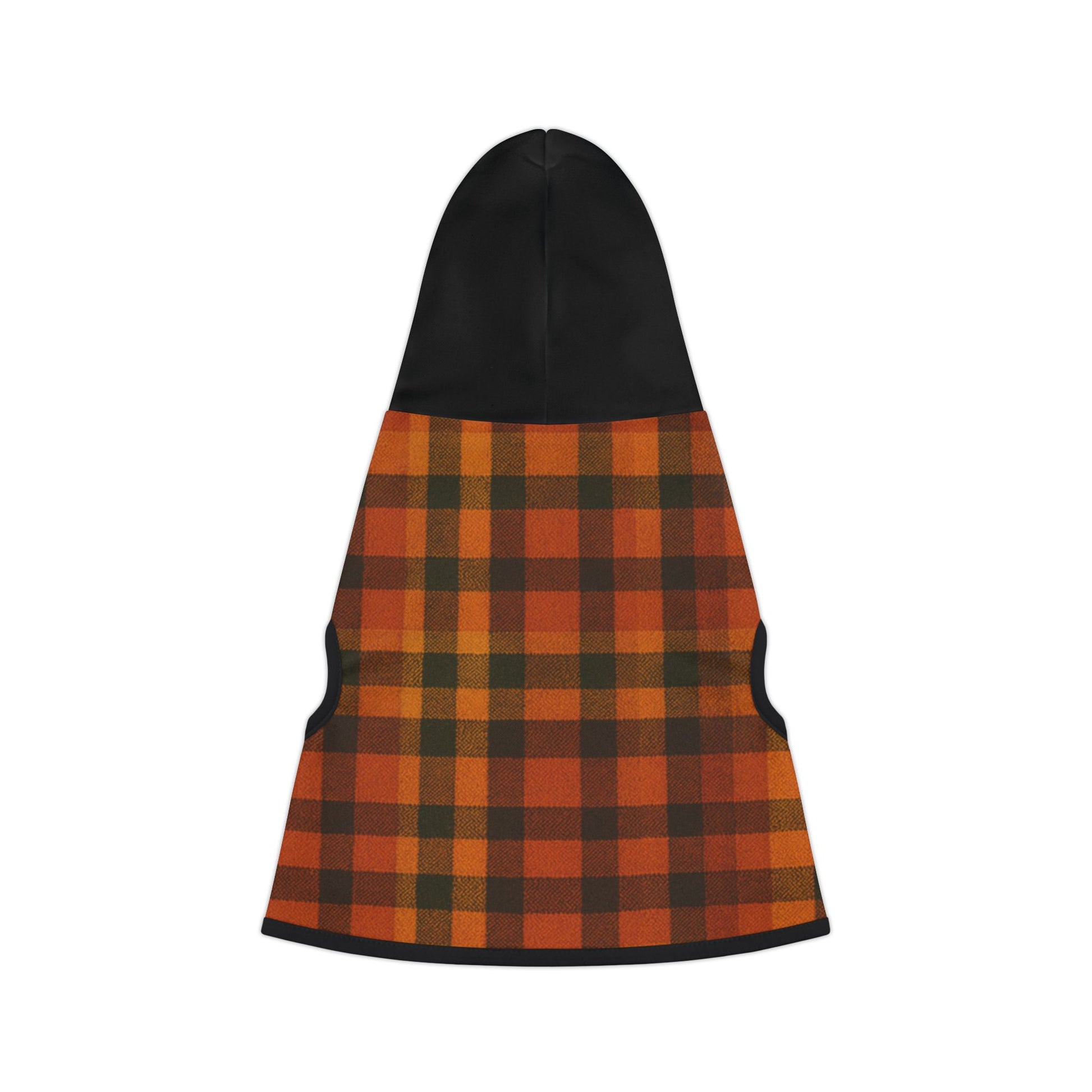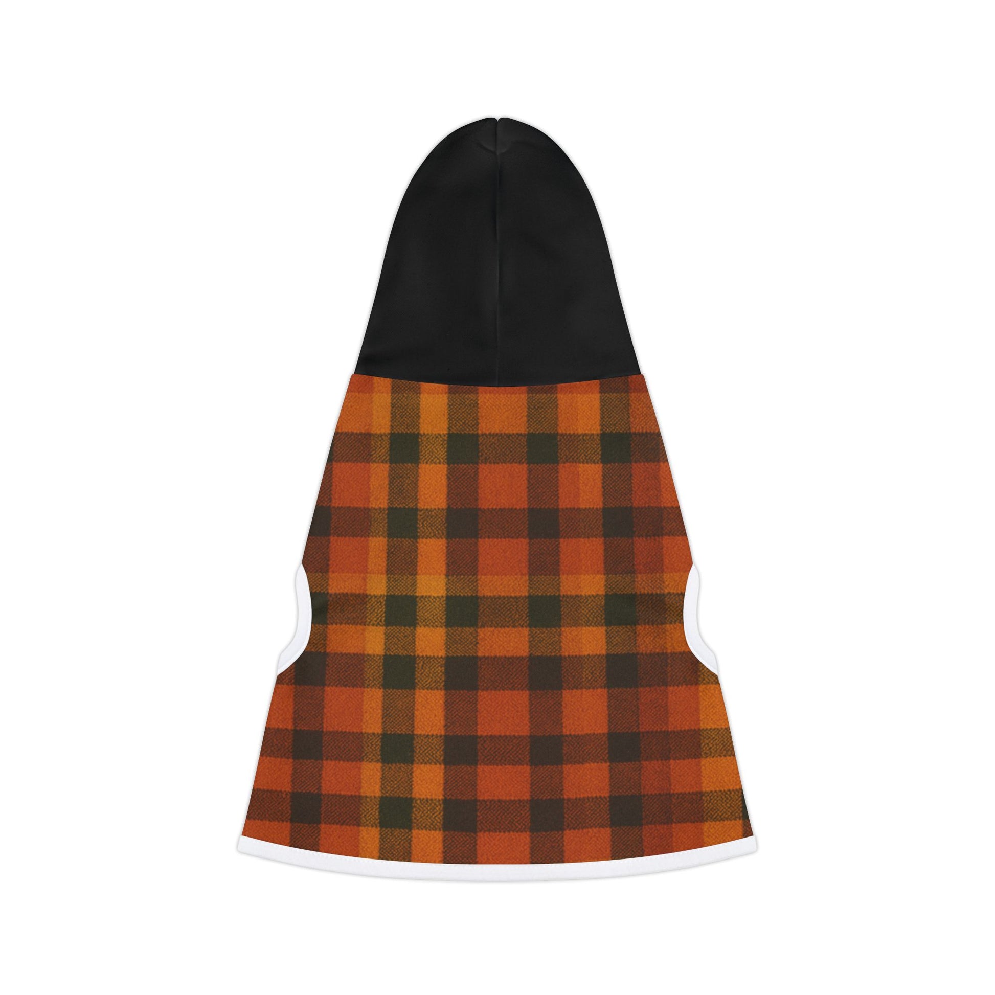 Give your pup the perfect blend of style and comfort this season with our Fall Plaid Dog Hoodie! Designed with a warm orange-and-black plaid pattern and a sleek black hood, this hoodie is the ultimate fall fashion statement for dogs.